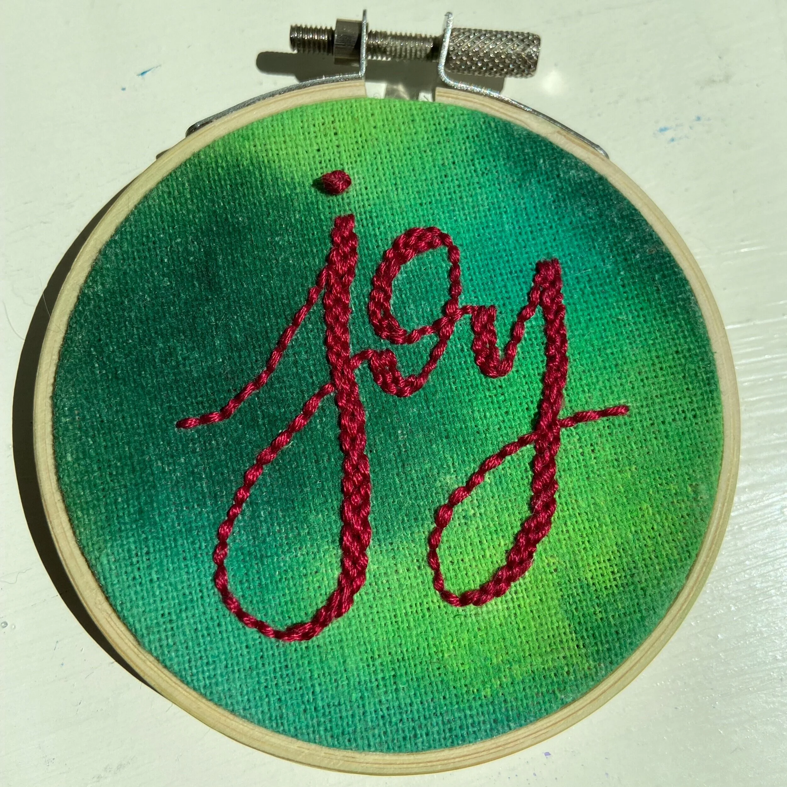 I made this embroidered watercolor ornament a few weeks back. I liked how my lettering translated onto the fabric, and I was thinking of how I could translate my ink and watercolor pieces onto fabric.