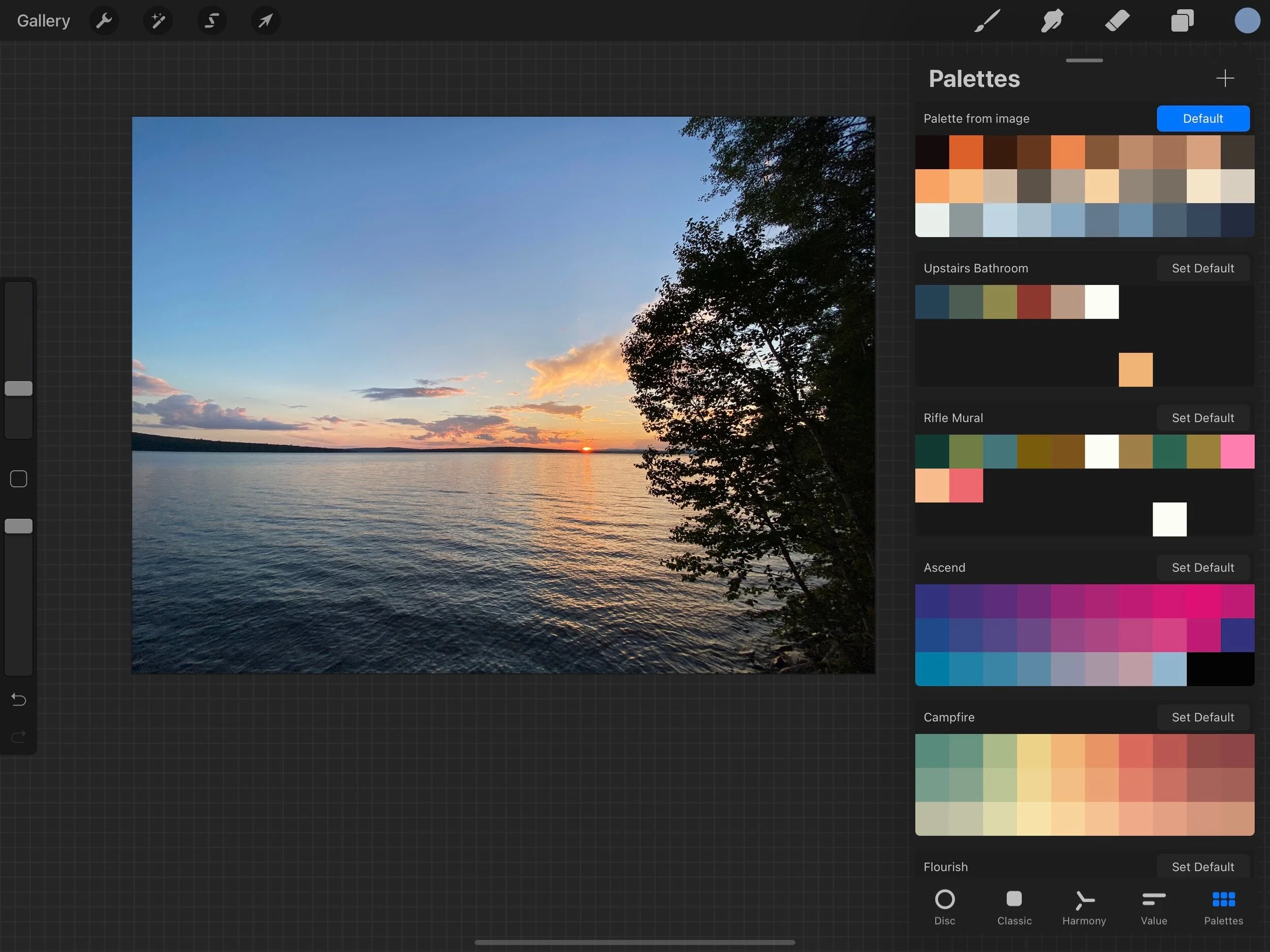 I input my photo into ProCreate. I knew there was a tool I could use to select colors, but I couldn’t remember how to access it. As I was looking it up, I found a way that you can have Procreate make a color palette for you based on your picture. I figured it would be worth it to try it out.