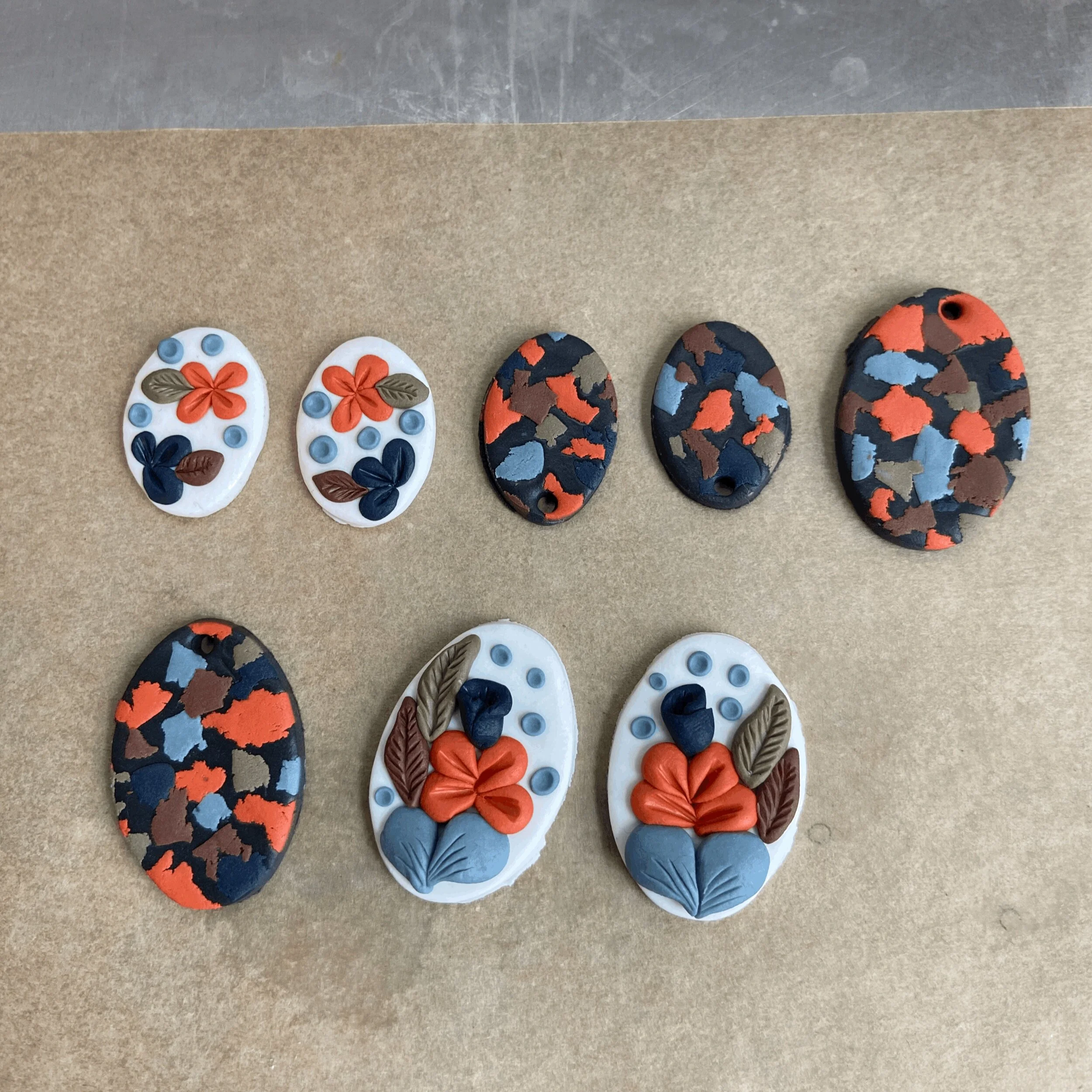 The floral and terrazzo pieces ready to bake.