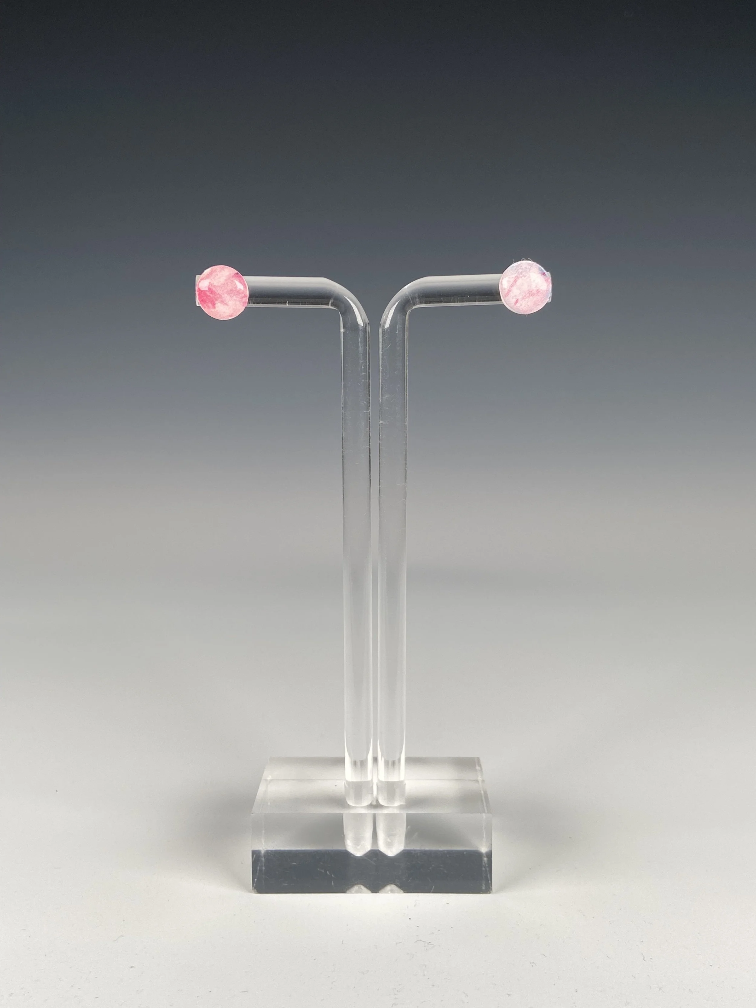 These earrings feature a beautiful watercolor transfer encased in resin for extra shine. I love the mix of colors in these earrings - so delicate and light, and the details of the watercolor print really come through! Each pair is unique and features a different section of the design.